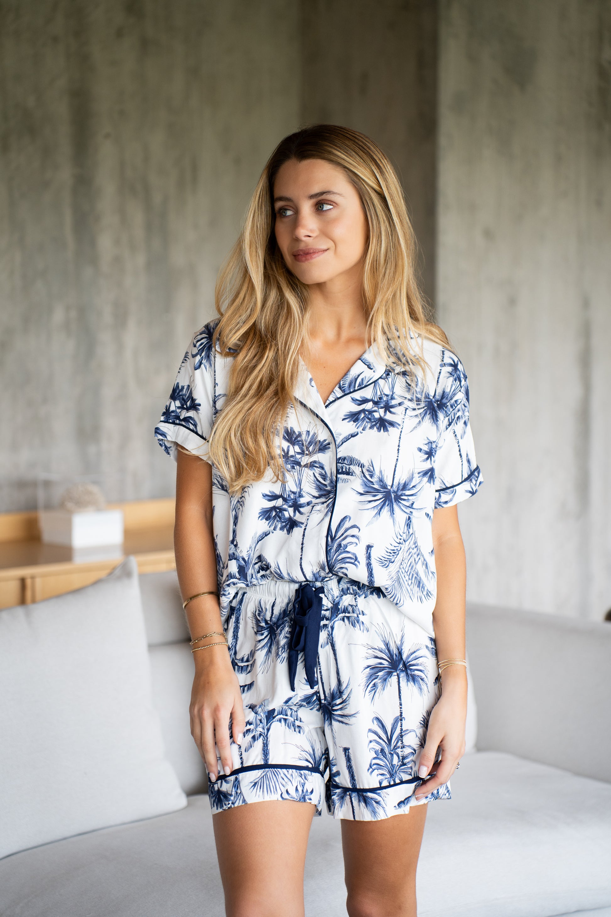La comodidad está garantizada con la blusa de manga corta y el short de corte holgado, que te ofrecen total libertad de movimiento y una sensación de ligereza. Es la elección ideal para quienes desean un descanso relajado con un toque de elegancia tropical