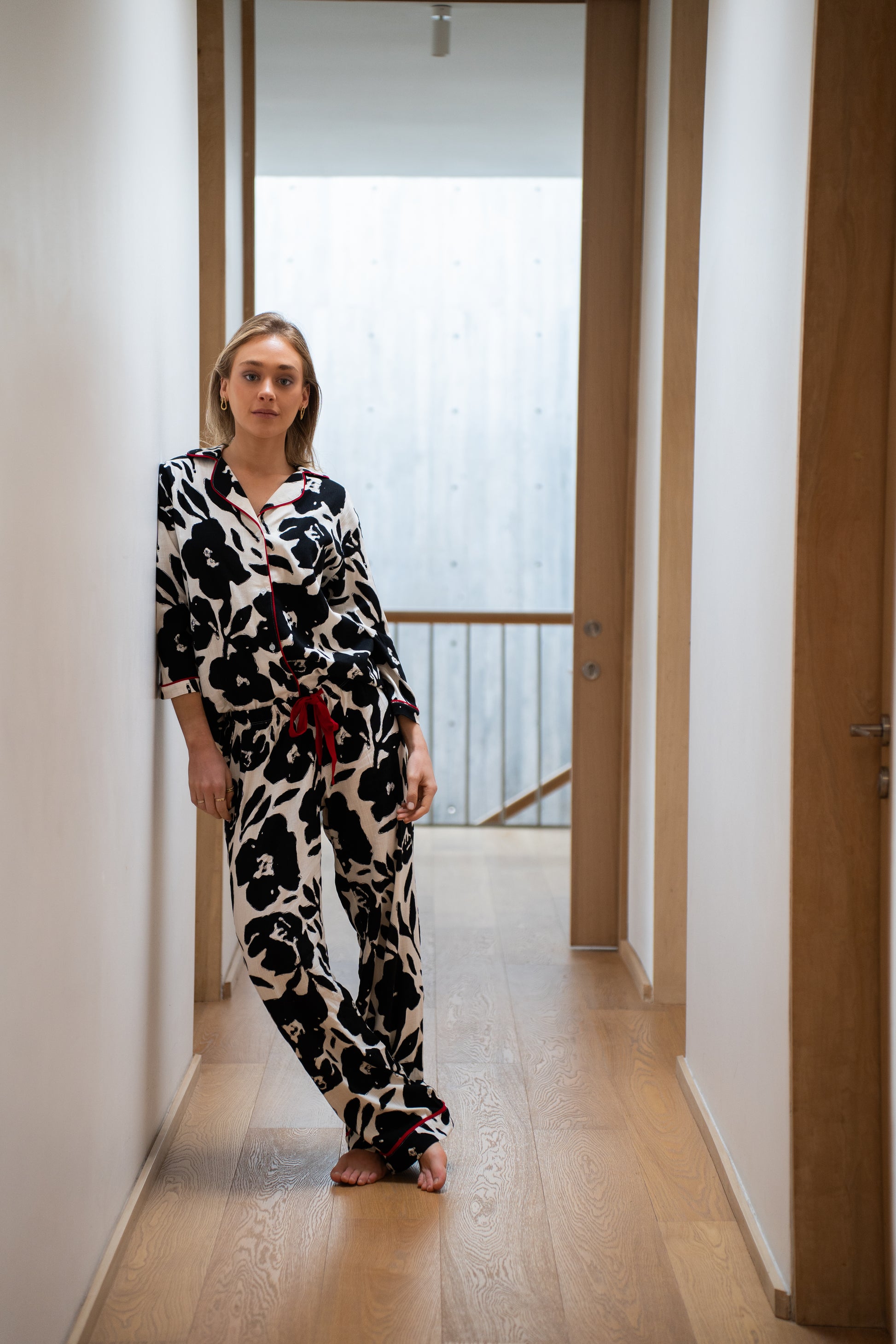 Pijama manga 3/4 y pantalón en un fresco y delicado lino para un descanso único y elegante, perfecto para quienes buscan un estilo original incluso a la hora de dormir.