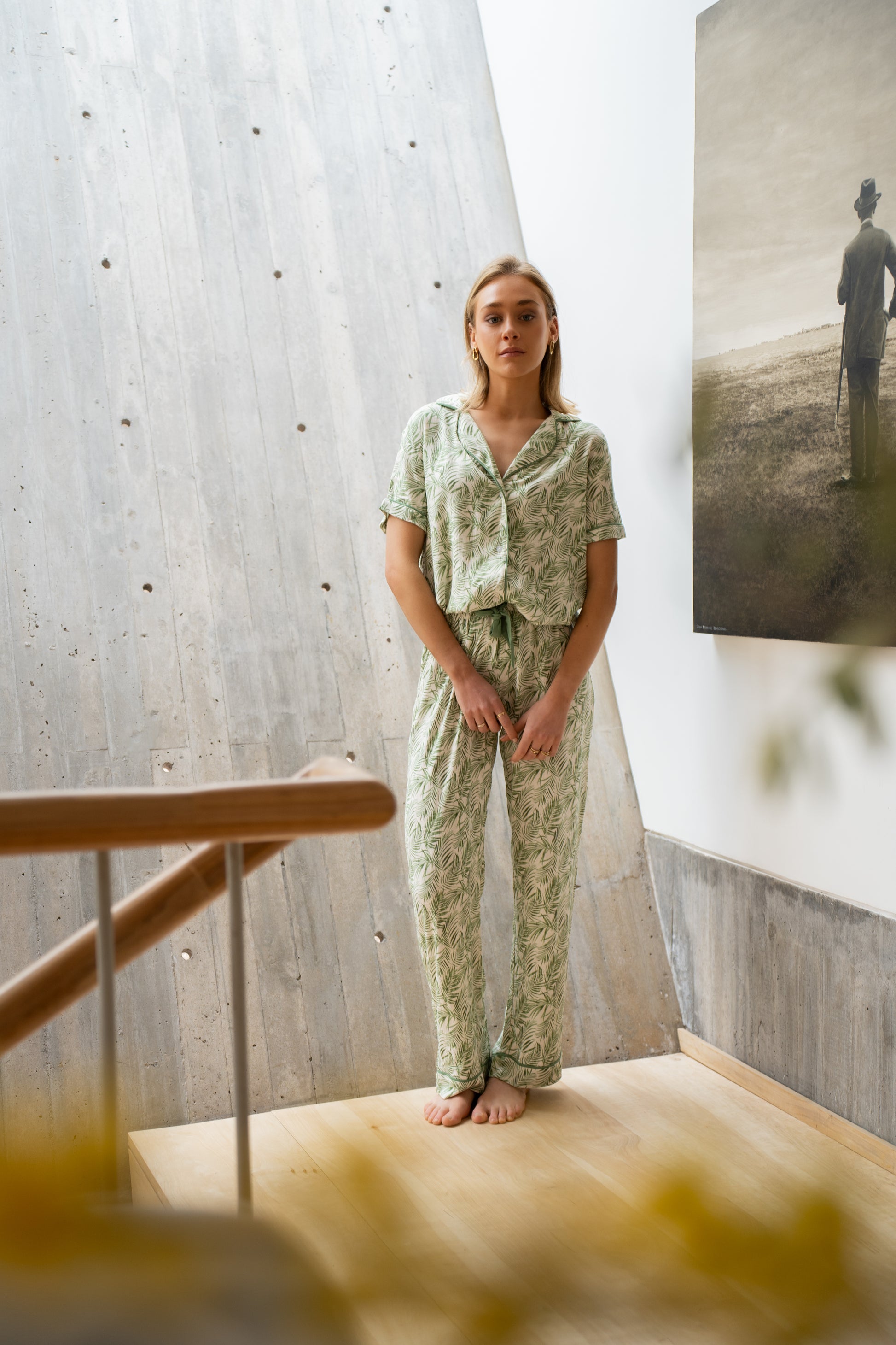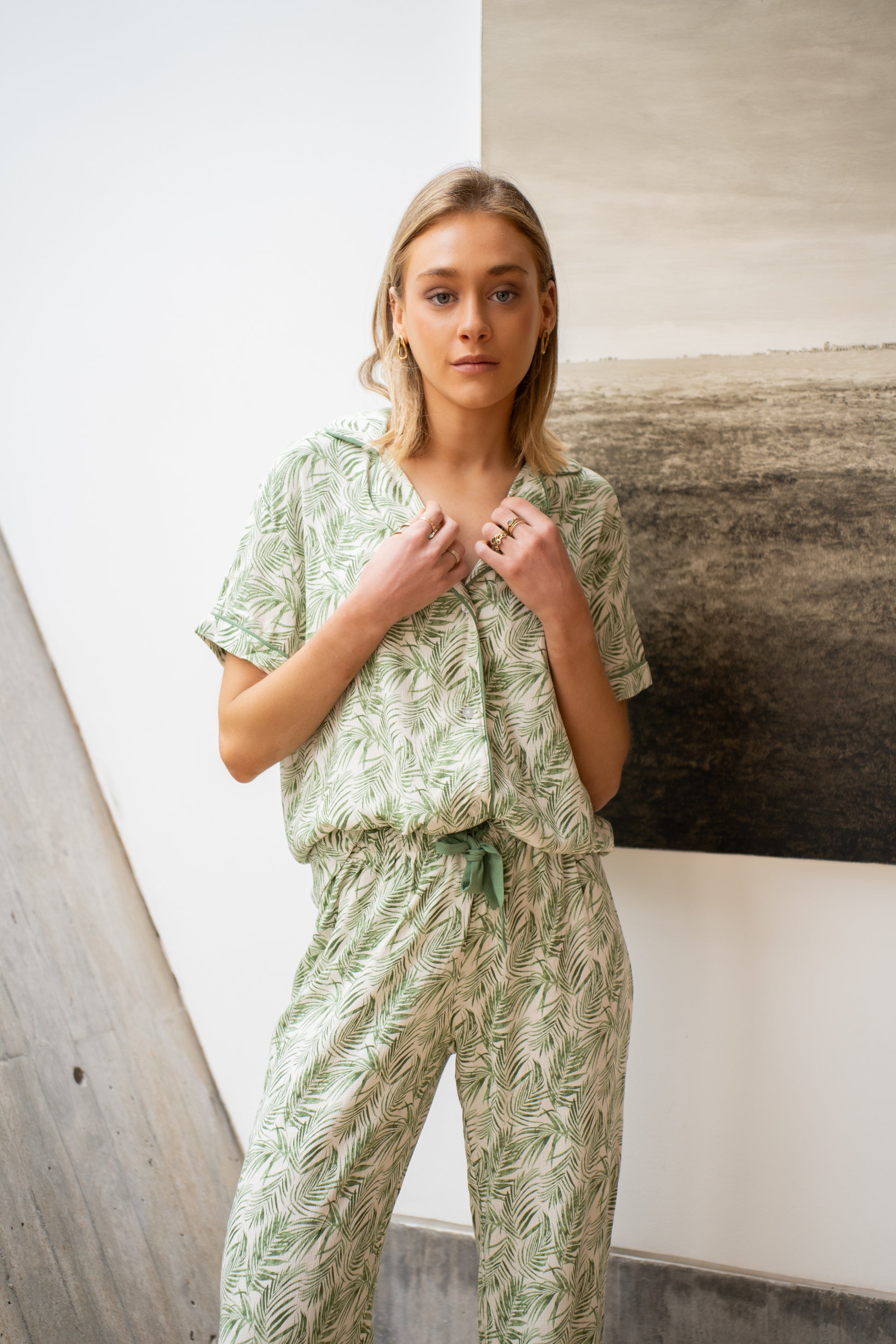 Pijama que conecta con la naturaleza tus noches de descanso de la nueva colección. Confeccionado en un tejido suave y ligero, este conjunto es la opción perfecta para quienes buscan una prenda fresca, natural y llena de encanto.